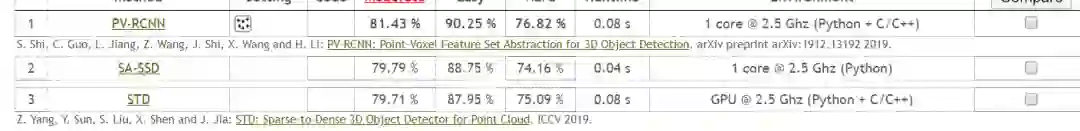 第一次在知乎上进行自己的创作,研究方向是3D目标检测,之后也有空也会不时更新知乎的文章,目前将自己的学习都记录在CSDN博客上,已经有一些如voxel-based的方法的深入研究和代码阅读以及自己的一些想法和实验,有时间的话也会陆续把博客迁到知乎平台共同学习交流。今天这一篇是19年12月30日放到arxiv上的,其实在CVPR2020截止后就一直在关注这一篇文章何时会放出来,毕竟在KITTI的3D检测上高居榜首,并且远远的超过了第二名。如下: