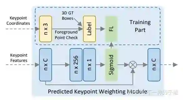 (1)上述的特征融合实际上都是为了进一步的refine做准备,第一阶段的proposals实际上是由voxel-based的方法提出来的,这一步 Keypoint Weighting的工作是为了给来自背景和前景的关键点一个不一样的权重,使得前景对refine的贡献更大。