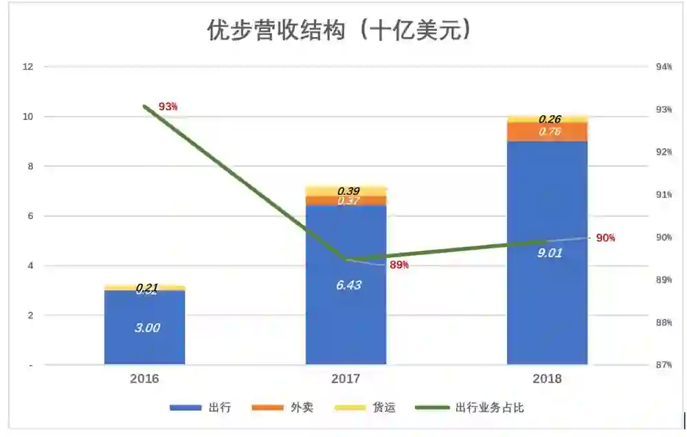 二是按比例获得营收,营收与总订单金额的比例称为变现率。优步出行变现率约为20%,外卖不到10%。