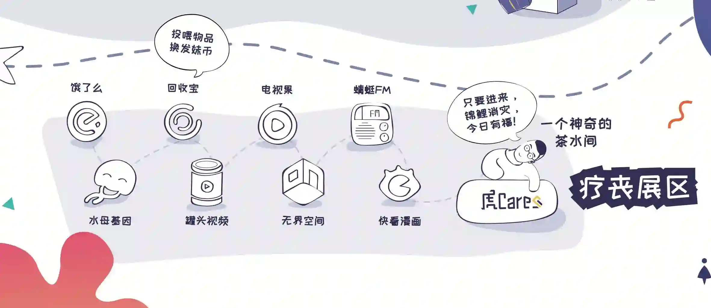 水母基因说“扭蛋机和棉花糖是治愈当代职场人焦虑的精神食粮。”然而我只关心扭蛋机能扭出啥花来,他们说:“钱!”我喜欢这个简洁而有力的回答。隔壁饿了么表示不服:“肚子没填饱,啥事都干不了。”所以他们把无人货架也搬到了现场,下单除了能拿到食物,还可能同时拿到“钱”……