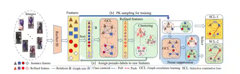 无监督人再识别(Re-ID)因其解决有监督Re-ID模型可扩展性问题的潜力而受到越来越多的关注。现有的无监督聚类方法大多采用迭代聚类机制,基于无监督聚类生成的伪标签训练网络。然而,聚类错误是不可避免的。为了生成高质量的伪标签并减少聚类错误的影响,我们提出了一种新的无监督人Re-ID聚类关系建模框架。具体来说,在聚类之前,利用图关联学习(GCL)模块探索未标记图像之间的关系,然后利用细化的特征进行聚类,生成高质量的伪标签。因此,协方差分析自适应地在一个小批量中挖掘样本之间的关系,以减少训练时异常聚类的影响。为了更有效地训练网络,我们进一步提出了一种带有选择性记忆库更新策略的选择性对比学习(SCL)方法。大量的实验表明,我们的方法比市场1501、DukeMTMC-reID和MSMT17数据集上大多数最先进的无监督方法的结果要好得多。我们将发布模型复制的代码。