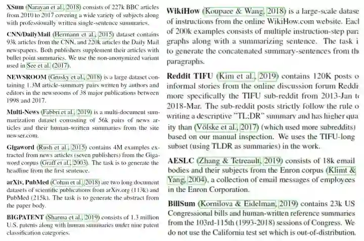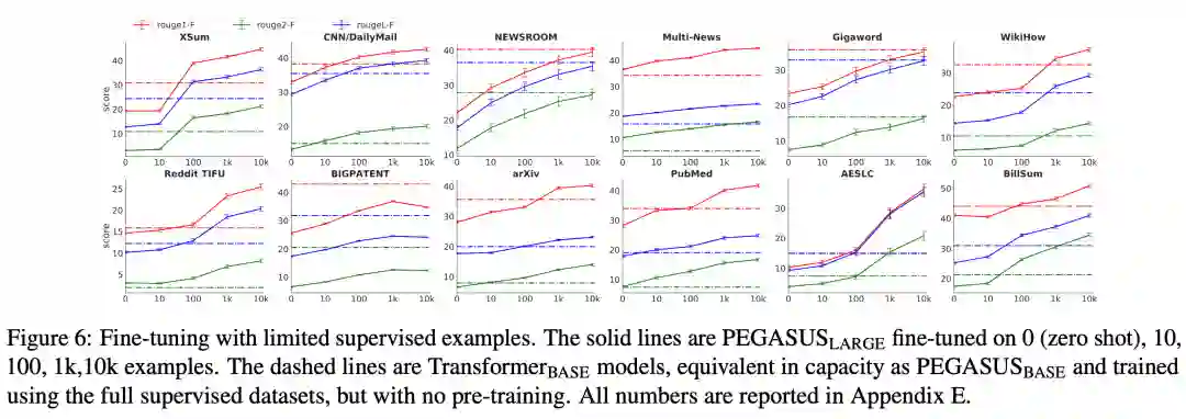 文章提出了一种专门针对文本摘要生成的预训练方法,并提出了一种 GSG (Gap Sentence Generation) 的生成方法,该方法在模型的 fine-tune 阶段只需要 1000 个 example 就能达到 12 个数据集的 SOTA,这个结果还是很抢眼的,值得仔细读一读。
