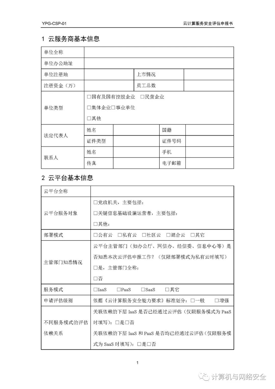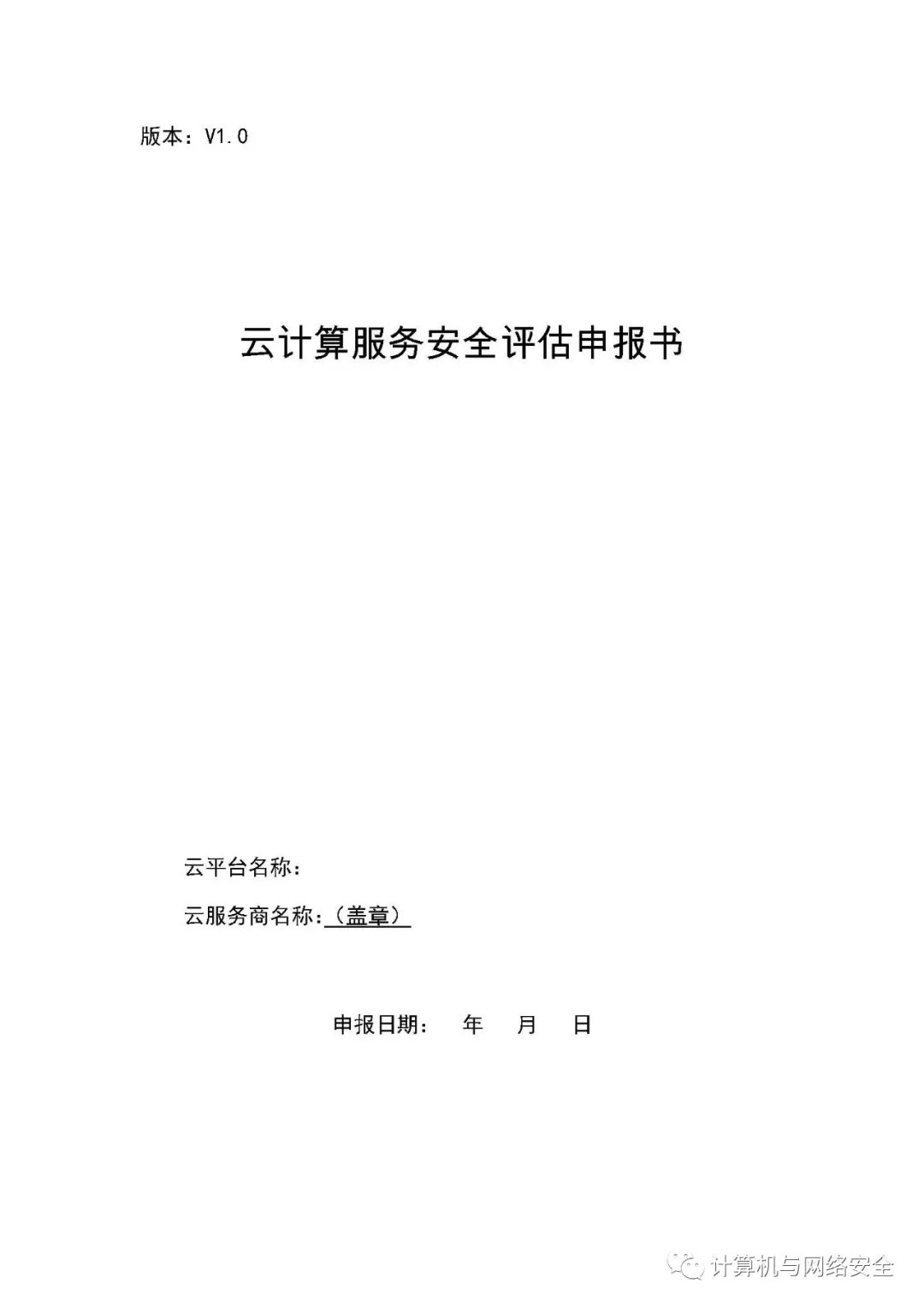 申请安全评估的云服务商,应如实填报申报书(模板见附件),并将盖章纸质版2份和电子版光盘1张通过中国邮政EMS快递或专人送至云计算服务安全评估工作协调机制办公室: