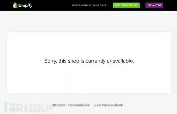 在Shopify的域名测试中,如果遇到以下两种网页响应,那么目标网站就可能存在子域名劫持漏洞: