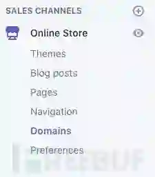 该场景中,我们以之前我们注册的商店名buckhacker来做演示。如果这个过程中,我们发现某个商店名称是可继续注册的,那么,我们只需在Shopify管理面板中去连接它即可。也就是在如下管理后台中的 “Online Store” 下点击 “Domains”: