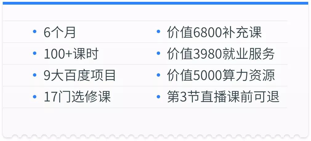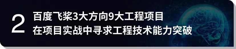 百度精选NLP/CV/计算广告与机器学习3大方向9大AI前沿工程项目,并提供企业真实应用的脱敏数据集供学员实战使用,旨在培养具有核心竞争力的AI工程师。
