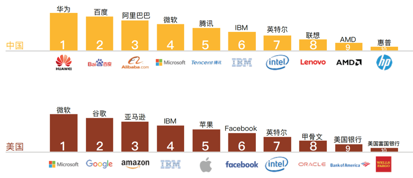 图:中美AI领域TOP10雇主 数据来源:LinkedIn