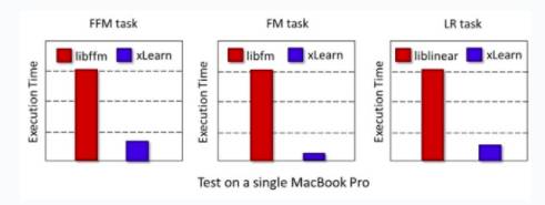 (4) 可扩展性好。xLearn 提供 out-of-core 计算,利用外存计算可以在单机处理 1TB 数据。