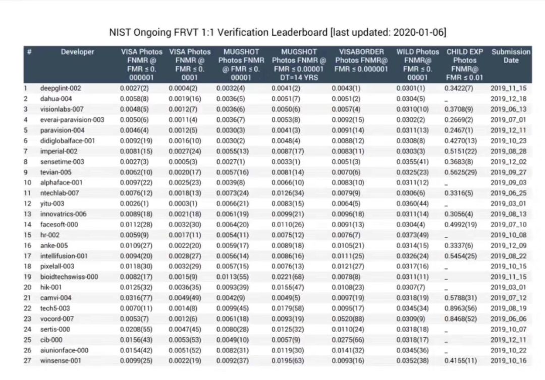NIST FRVT称得上是全球最权威的人脸识别竞赛,我有幸也参与到了这项比赛中。几个月准备过程中的各种痛苦和折磨,最终也都转化成了优异的成绩,算是一种安慰吧。下面介绍一下比赛的基本情况。