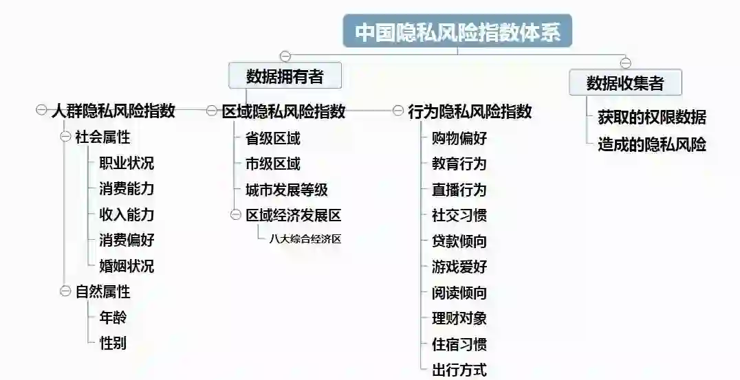 中国隐私风险指数是一个反映我国在特定时段内数据拥有者(移动用户)因个人数据被收集者(App开发者)获取而面临的隐私风险及数据收集者造成的隐私风险相对数的宏观指标,用来反映不同移动用户个体或群体面临隐私风险的差异。
