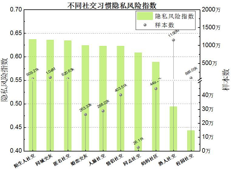 社交习惯指人们经常使用的社交App类型,包括人脉社交、匿名社交、陌生人社交、同志社交、情侣社交、妈妈社区、同城交友、校园社交、熟人社交、婚恋交友10种属性。偏好与陌生人互动的社交人群隐私风险偏高,如同城社交、匿名社交及婚恋交友等,且这些社交方式的隐私风险差异不大,熟人社交、校园社交人群隐私风险偏低。