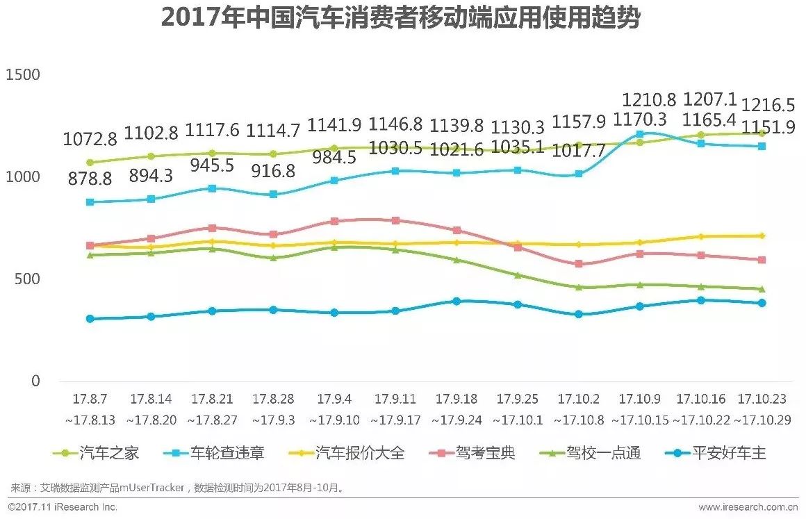 艾瑞监测数据显示,查违章应用类APP中,车轮查违章以1805.7万的设备覆盖量高居首位;在汽车养护类APP中,车主无忧以373.6万设备覆盖量位居第一,途虎养车、汽车超人等应用紧随其后。