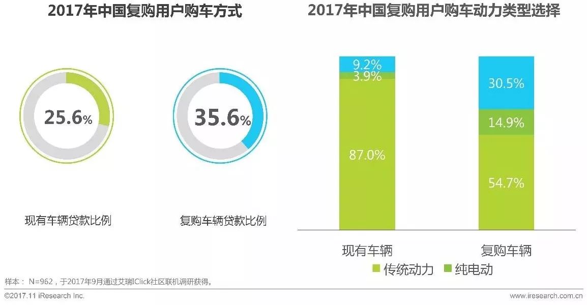 调研数据显示,复购用户再次购车选择贷款方式比例高达35.6%,明显高于首次购车贷款比例,汽车金融渗透率快速提升;