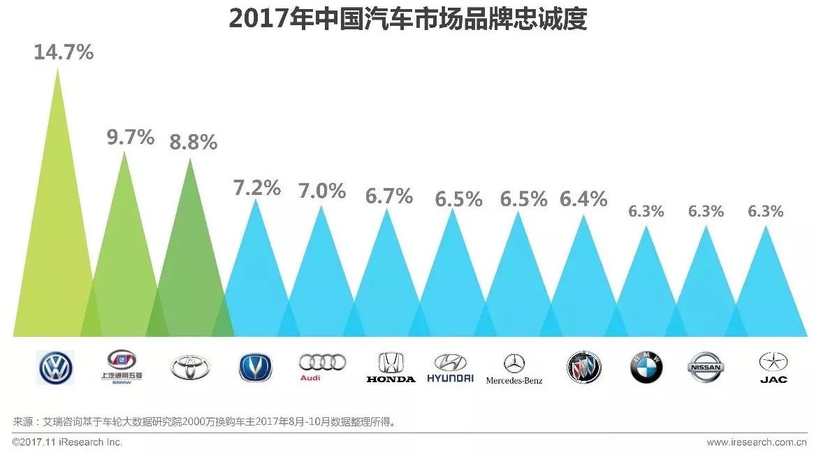 数据统计显示,大众品牌以14.7%用户复购率稳居各品牌之首,五菱及丰田分居二三位;