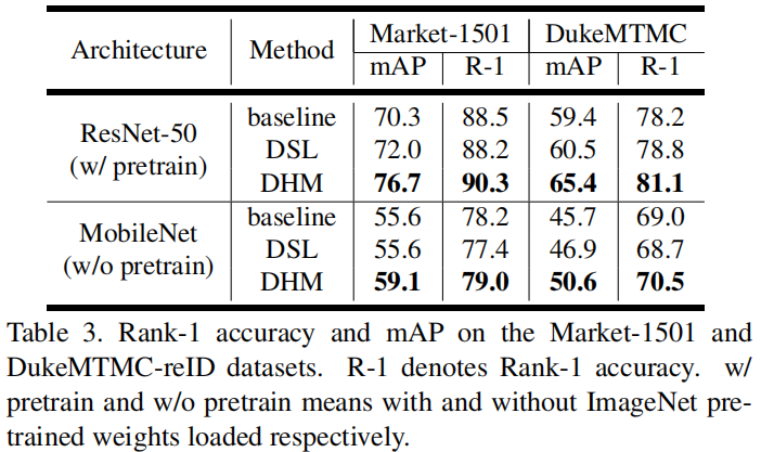 其次,作者给出了Market1501数据集上的性能对比,见下图。结论同前,不再赘述。