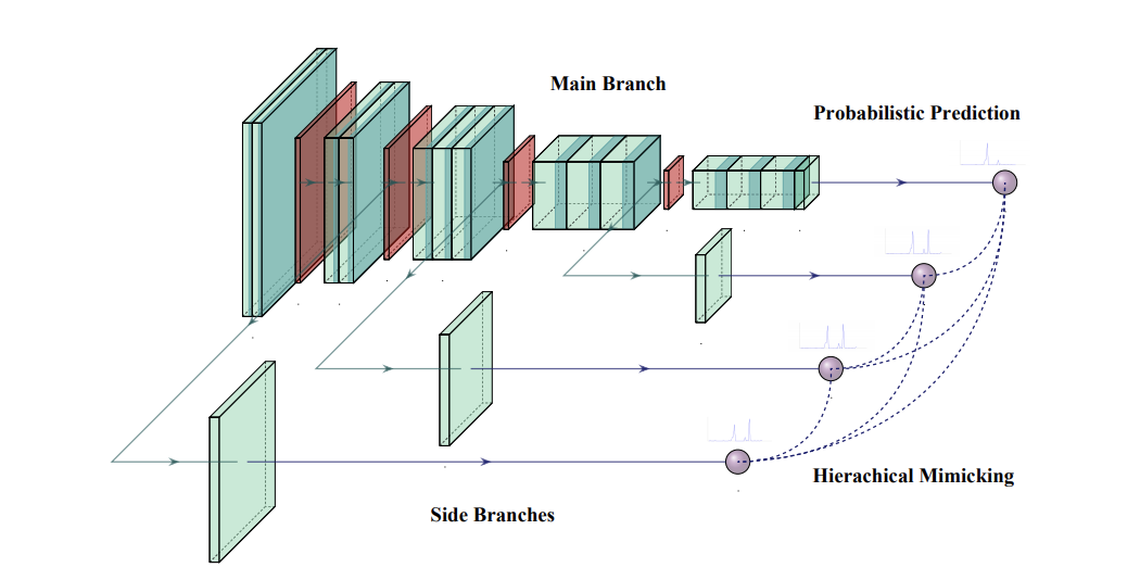 通过上述上述训练方式,中间层不仅可以从顶层损失获取梯度信息,还可以从分支损失获取提取信息,这使得其具有缓解“梯度消失”,加速网络收敛的功能。