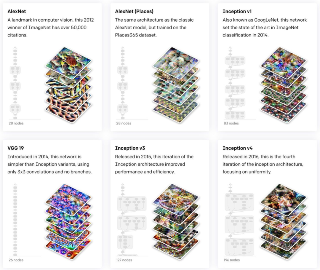 OpenAI Microscope 中深层神经网络可视化后是这样的: