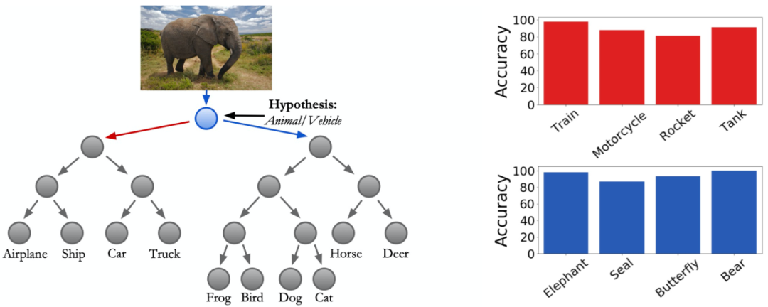 此外,NBDT 的预测层次轨迹也是可视化的,可以说明哪些可能性被否定了。