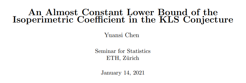https://gilkalai.wordpress.com/2020/12/21/to-cheer-you-up-in-difficult-times-15-yuansi-chen-achieved-a-major-breakthrough-on-bourgains-slicing-problem-and-the-kannan-lovasz-and-simonovits-conjecture/#:~:text=The%20KLS%20conjecture%20asserts%20that,Lov%C3%A1sz%20and%20Simonovits%20hyperplane%20conjecture.)