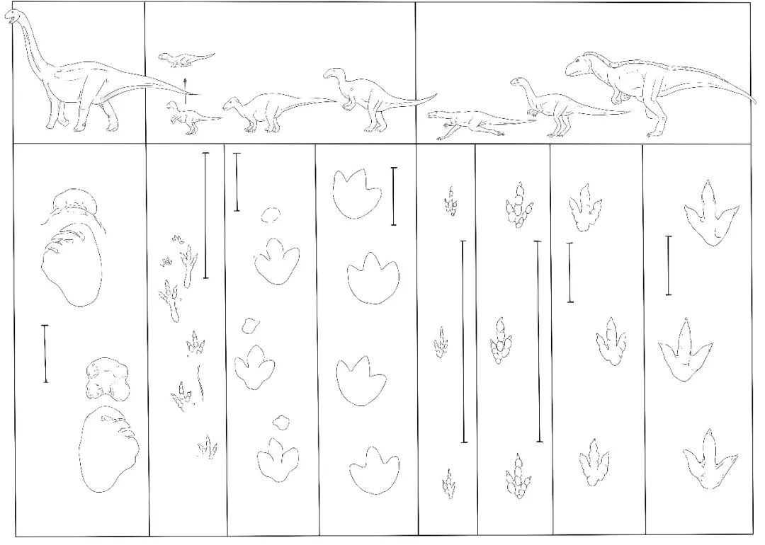 大足邮亭恐龙足迹生态复原图(张宗达绘图)