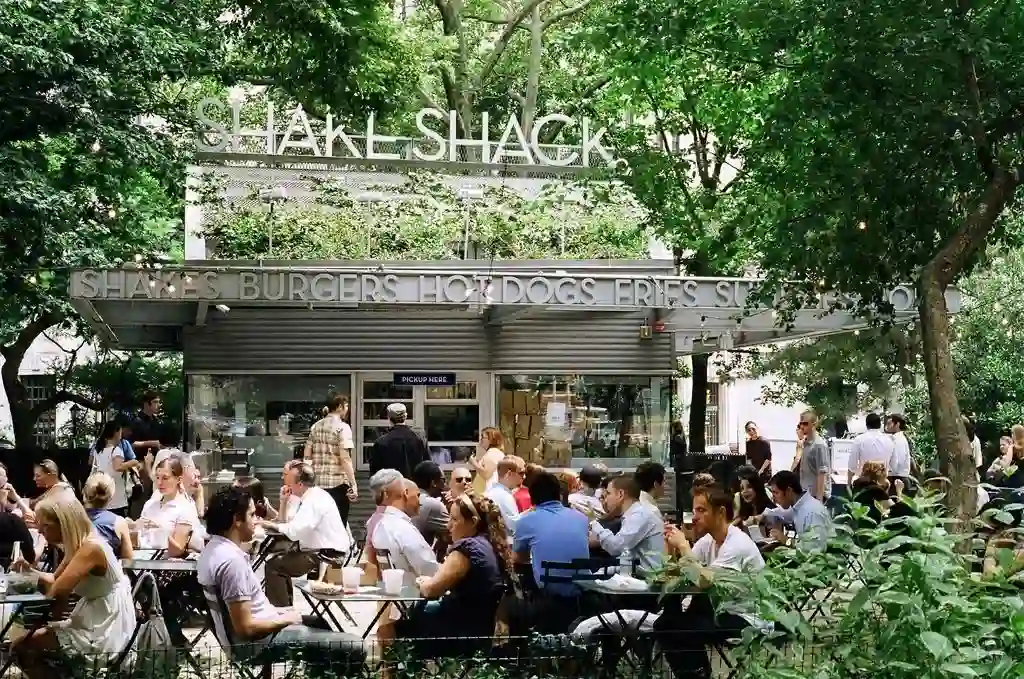 (图片说明:Shake Shack最初只是纽约麦迪逊广场公园的一间小亭子,但创始人梅尔坚持以高级餐厅的标准去运营。)