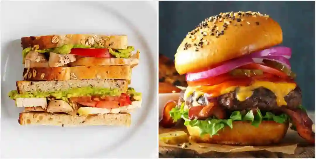 (图片说明:国外汉堡店的汉堡多指牛肉汉堡,而夹层为鸡肉的多为三明治。)