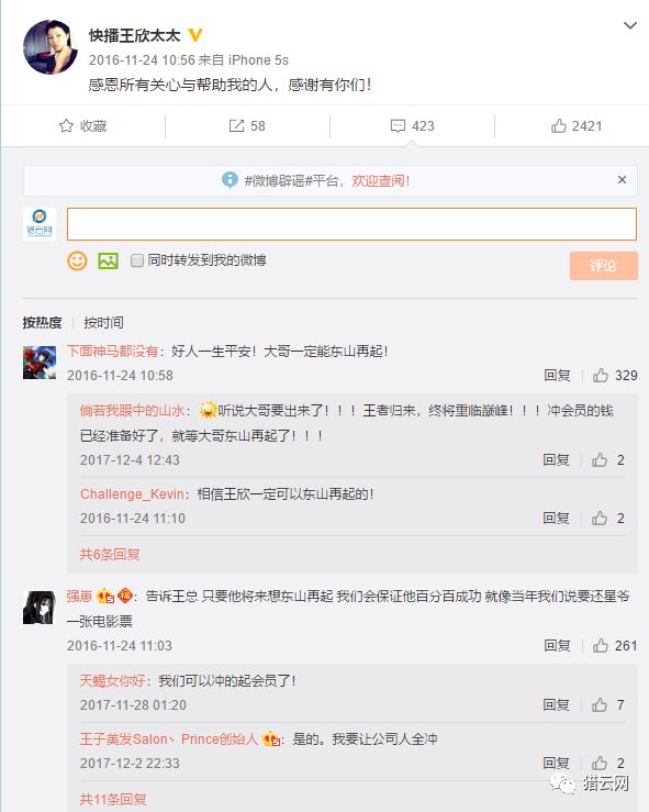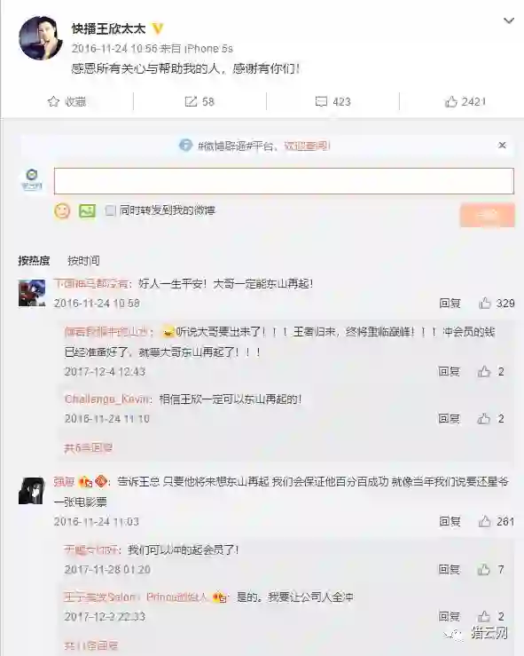 2014年快播危机爆发,王欣太太为其奔走呼吁。这位王欣太太为王欣保留下50平米办公室,以及活跃在互联网里的拥趸者。