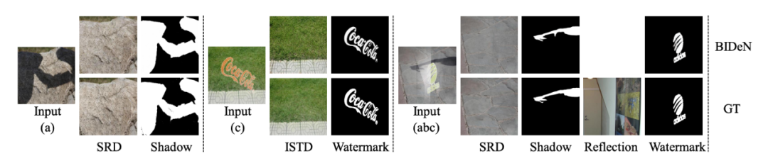 ▲ 任务III是把去阴影,去水印,还有去反光联合起来了。建立在SRD以及ISTD数据集上。