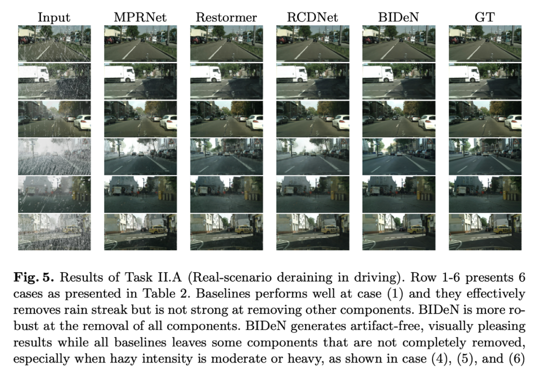 Task II. A: Real scenario deraining in driving.