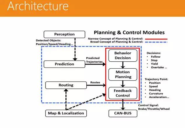这是一个最基本的决策和控制的架构,但这个部分其实是无人驾驶中最难的部分。
