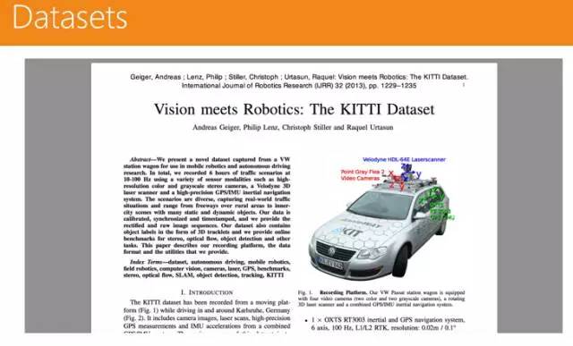 感知就是理解环境,要做感知,需要的是一个数据集。在无人驾驶行业,有一套通用的数据集——KITTI 数据集,里面有不同的数据,包括双目视觉的数据、定位导航的数据等。
