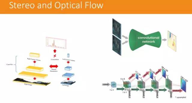 光流也可以利用深度学习的模型来做,把左右两图用同样的模型来提取特征,经过计算就能得出一个深度的信息。但是这个方式的计算量非常大。
