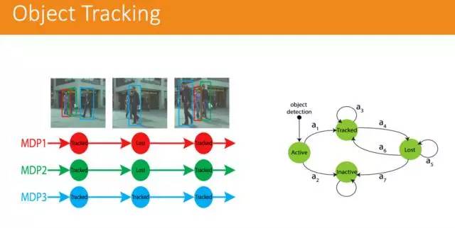 这也是无人驾驶中一个比较重要的技术。如何预测行人下一个动作、怎么去跟踪这个行人,也有一系列问题。里面用到的是马尔可夫链的解决方案,这个技术叫做 MDP,跟踪一个人,随时跟踪其下一个动作,预测其下一个动作。以上其实都是一些传统的感知方法,而这些年随着深度学习的不断进步,应用也非常广泛。在物体识别方面,有两个非常有效的模型。