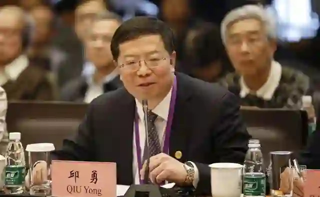 邱勇在会议上讲话。