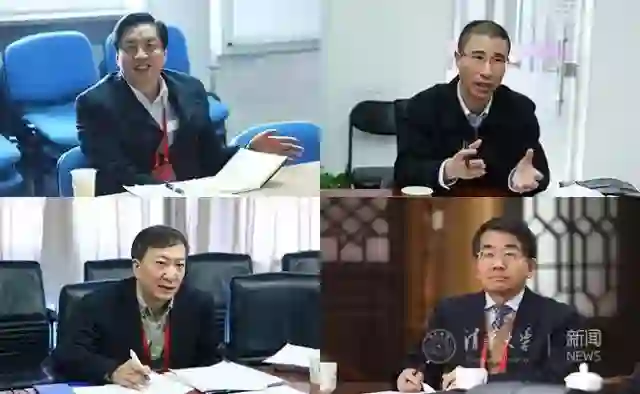 专家组成员谢和平、张广军、李言荣、黄维(从上至下、从左至右)在清华考察期间的工作照。