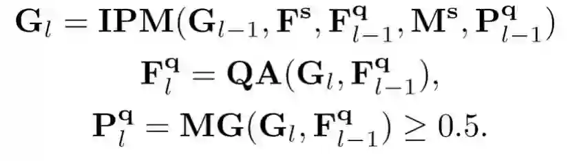由于一个中间原型挖掘Transformer层可以更新中间原型、查询特征图和查询分割掩码,因此,作者通过迭代执行这个过程,得到越来越好的中间原型和查询特征,最终使分割结果得到有效提升。假设有L 层,那么对于每一层有: