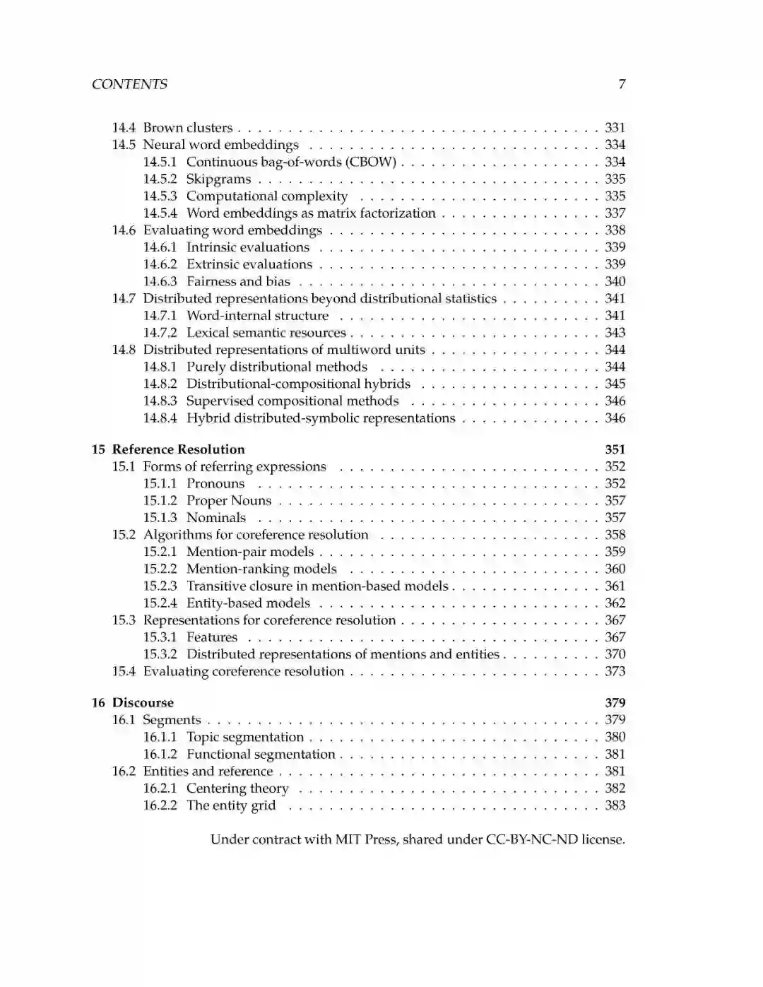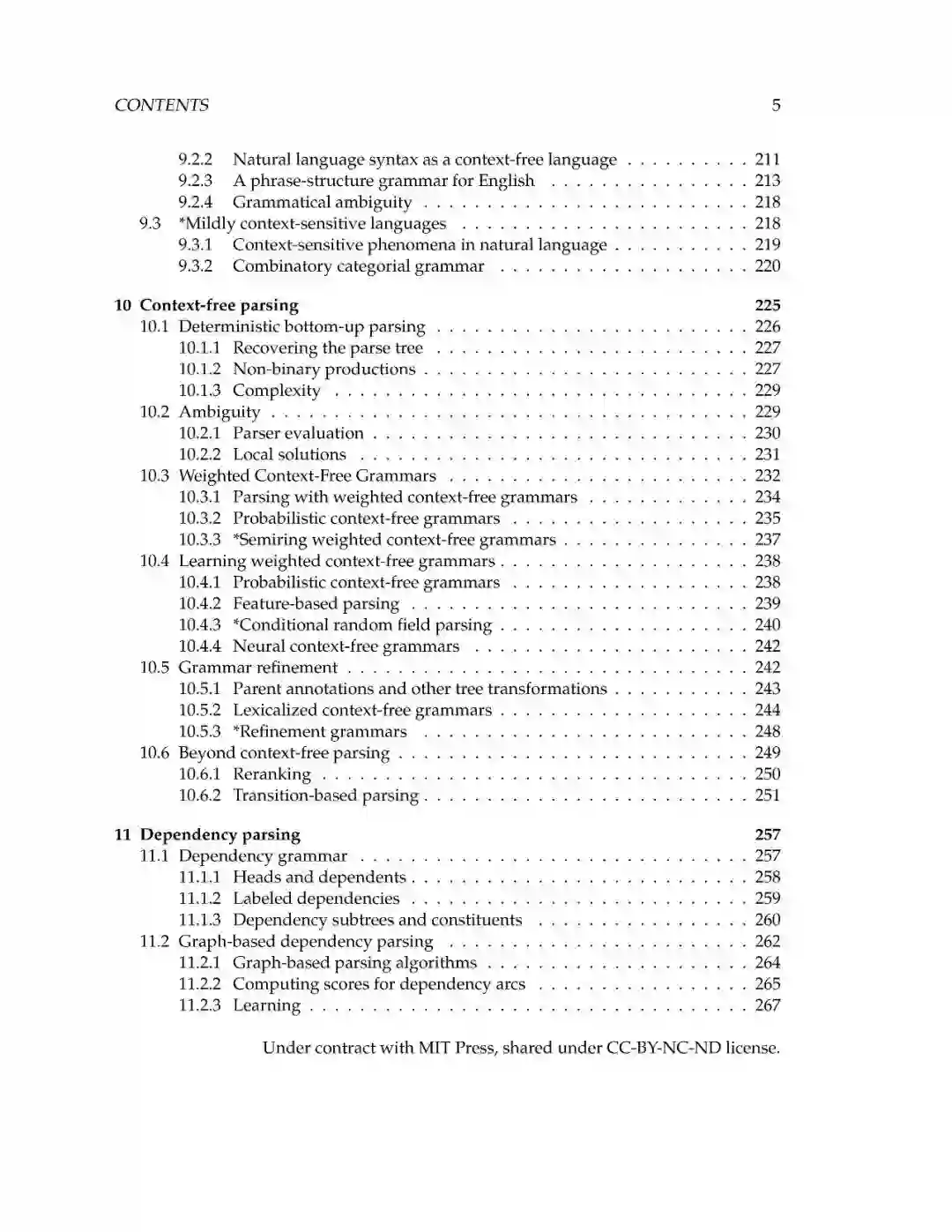 序列与树:这一章节将自然语言作为结构化的数据进行处理,它描述了语言用序列和树进行表示的方法,以及这些表示所添加的限制。第 9 章介绍了有限状态自动机(finite state automata)。