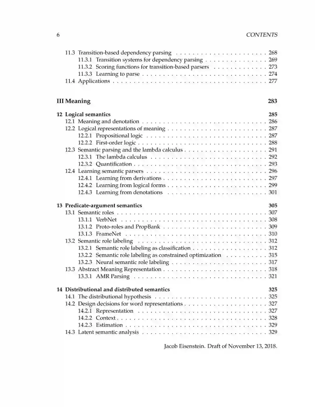 语义:本章节从广泛的角度看待基于文本表达和计算语义的努力,包括形式逻辑和神经词嵌入等方面。