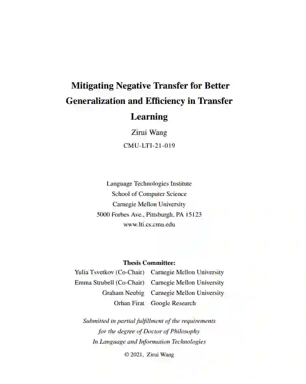 后台回复“NT201” 就可以获取《【CMU博士论文】缓解负迁移提高迁移学习的泛化和效率,201页pdf》专知下载链接