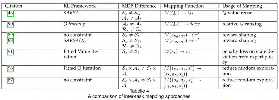 本综述的其余部分组织如下:在第2节中,我们介绍了强化学习的背景,关键的DRL算法,并带来了这篇综述中使用的重要术语。我们还简要介绍了与TL不同但又紧密相关的相关研究领域(第2.3节)。