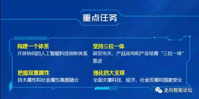 ——形成较为成熟的新一代人工智能理论与技术体系。在类脑智能、自主智能、混合智能和群体智能等领域取得重大突破,在国际人工智能研究领域具有重要影响,占据人工智能科技制高点。