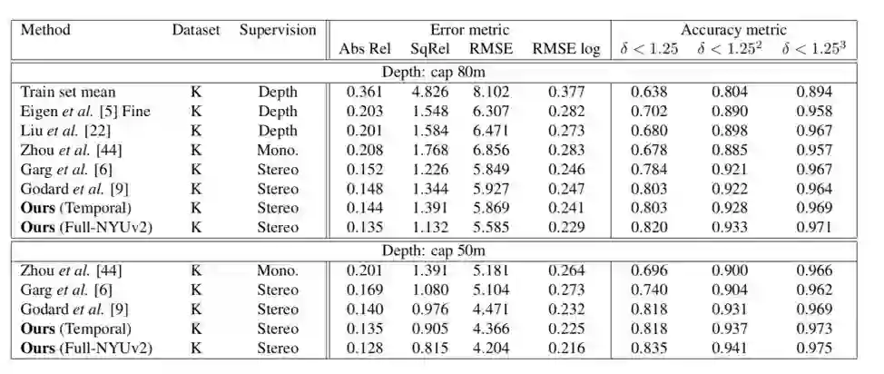 本文实验主要使用KITTI数据集训练以比较单视图深度估计和里程估计。