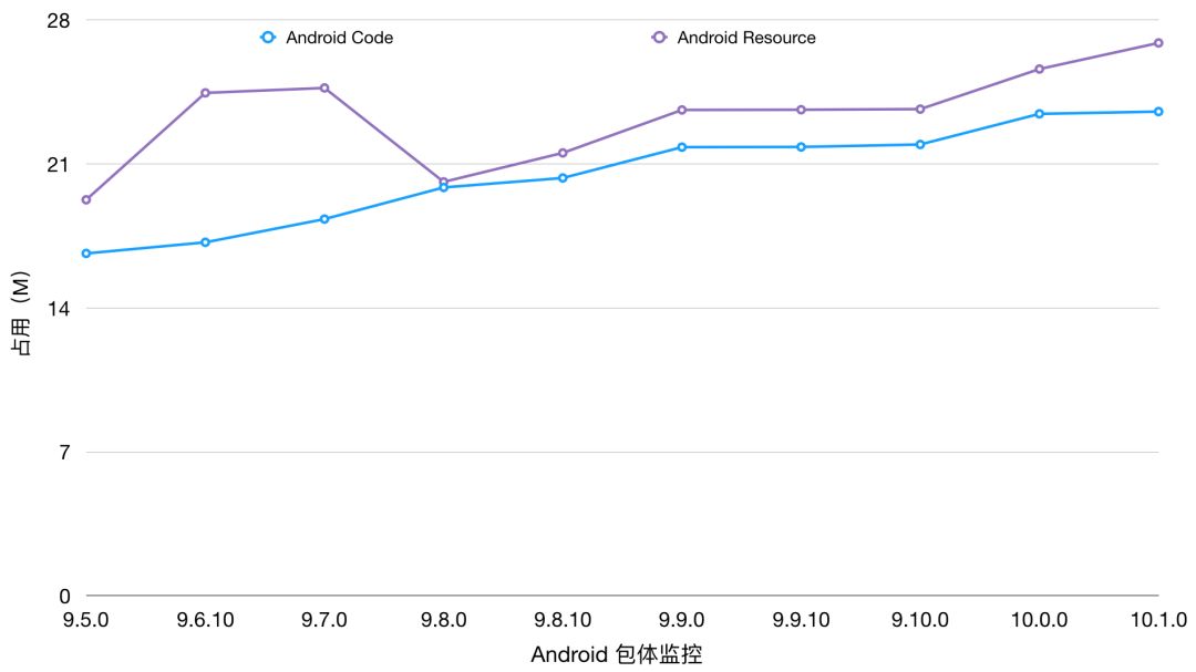 我们对包体总大小、可执行文件以及图片进行全方面的监控,包体变化的趋势一目了然,对于包体的异常变化我们可以第一时间感知。