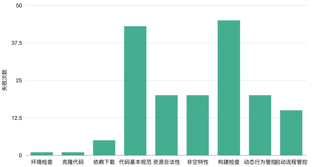 我们会对异常流程进行监控并且通知流程发起者,同时我们会对失败次数较多的Job分析原因。一部分CI环境或者网络问题MCI可以自动解决,而其它由于代码错误引起的异常MCI会引导移动研发进行问题的排查与解决。
