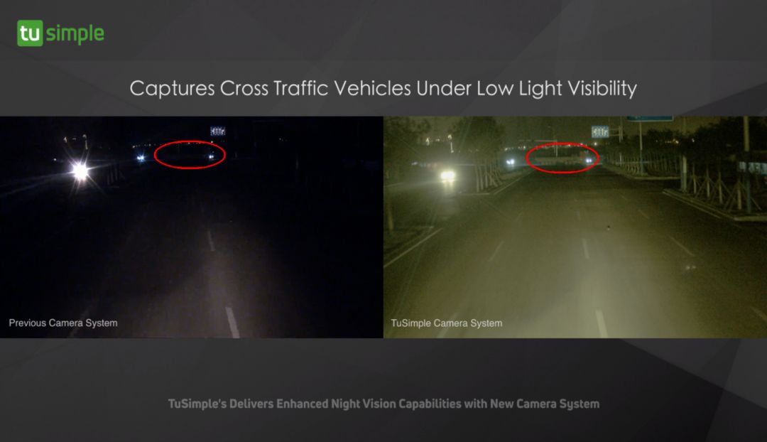 传统相机(左)VS图森未来自研相机(右)在低光照情况下成像对比