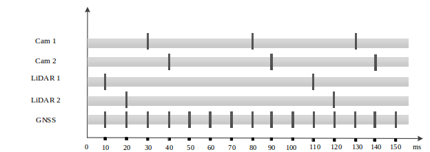 对于相机来说,可以通过发送触发信号,让其在特定时间进行曝光,这种信号可以是软件的,也可以是硬件的,但硬件信号的精度无疑是远远高于软件信号的精度的。对于激光雷达来说,一般都会有相位同步的功能,对于机械式雷达,可以控制其在特定时刻旋转到特定角度。同理,组合导航的PPS信号是一切触发源的基础。