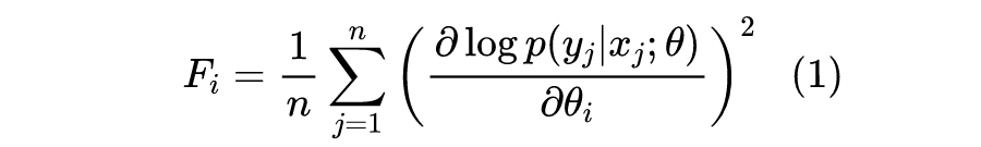 则是其中的第 i 个参数,那么我们计算如下形式的 Fisher 信息作为该参数的重要性: