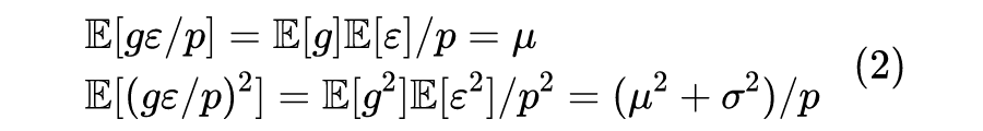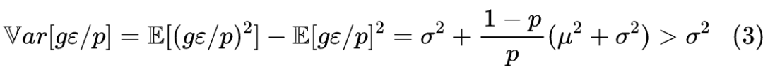 也就是说,梯度 Dropout 能保持梯度的均值不变,但能扩大方差,而在 SGD 中,更新量正比于梯度,因此梯度 Dropout 扩大了更新量的方差,论文认为这有助于模型达到更好的收敛结果。