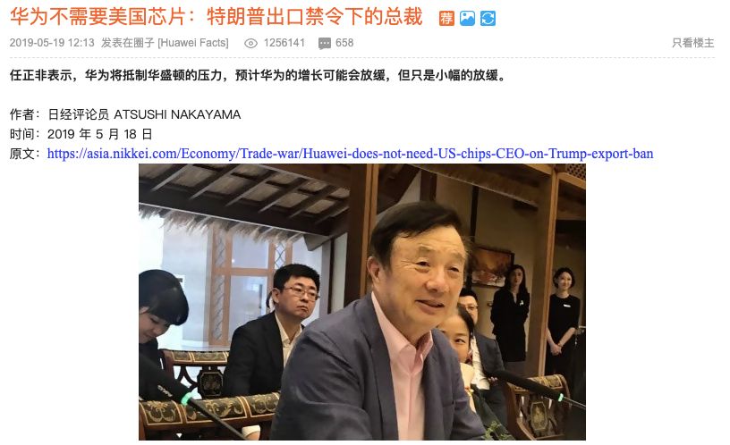 华为公共及政府事务部发布在华为 “心声社区” 上的《日本经济新闻》的报道
