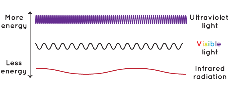 三种不同光源的波长(从上到下依次是:紫外线、可见光、红外线)
